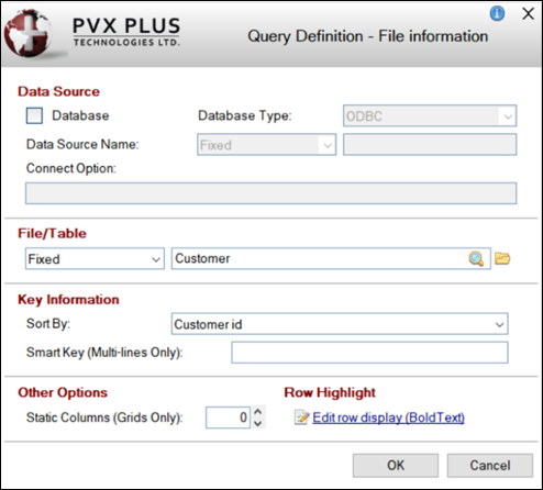 The Query Definition - File information window consists of the following options: