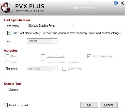 Select this check box to reset the font properties to the default settings. The default settings are <Default Graphic Font>, Regular size with ANSI characters. |
