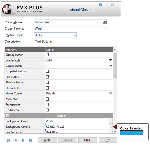 The Visual Classes Maintenance Utility is used to define the display properties for creating a Visual Class. Visual Classes created with this utility are stored in the providex.ccl file.