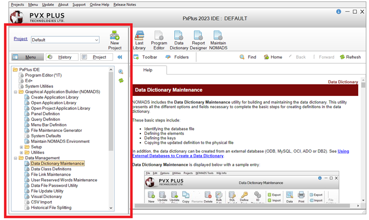 (The ability to open File Maintenance panels in NOMADS from the Project list was added in PxPlus 2023.)