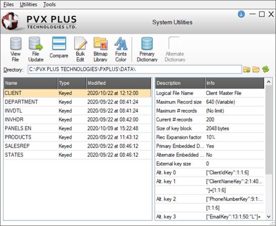 PxPlus comes equipped with several utilities that are not, strictly speaking, part of the language, but provide various design, configuration, maintenance and diagnostic services within the development environment. These utilities are actually separate programs that reside as auxiliary files in the PxPlus system sub-directory, Lib. All of the utilities are installed with the PxPlus base system, but some were originally designed for use in a character-based environment, some apply to a graphical (Windows) system only, and some require a thorough understanding of PxPlus internal code and may not be available for general use. The majority of system utilities are intended for the creation, debugging, and management of PxPlus programs, files, and directories. See Development Tools.