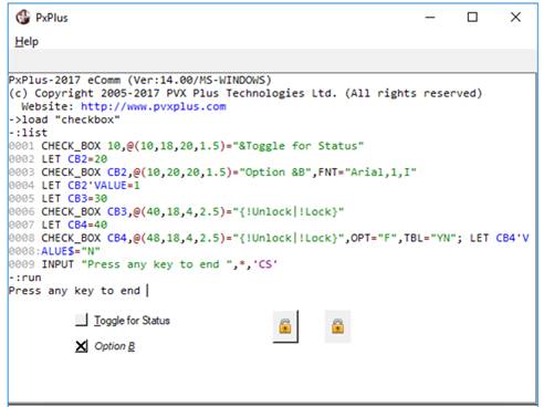 CHECK_BOX 10,@(10,18,20,1.5)="&Toggle for Status"