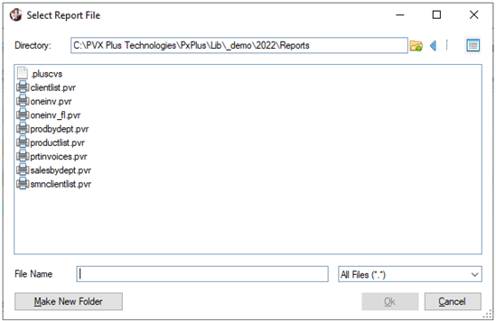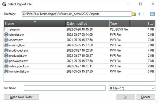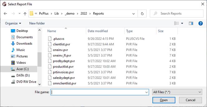 GET_FILE_BOX READ X$,"*demo\2022\reports","Select Report File","All Files (*.*)|*.*,Report Files (*.pvr)|*.pvr,","pvr"