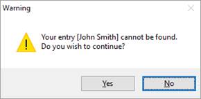 MSGBOX "Your entry ["+X$+"] cannot be found."+SEP+"Do you wish to continue?", "Warning","YESNO,2,!",yesno$