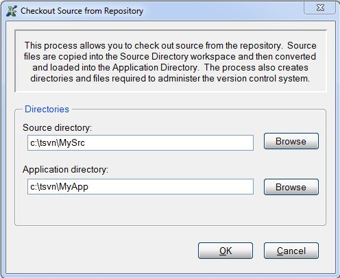 For most users, this is the only setup step required. While the import procedure is performed once by just the administrator, the Checkout step is performed once by all developers involved in writing the application. This step creates source and application directories using the latest versions of the files in the repository.