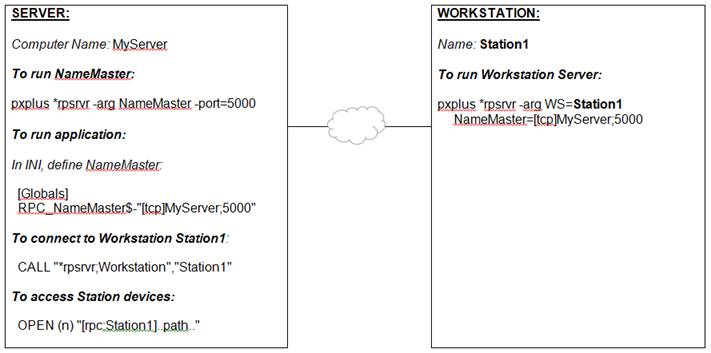 Launching a Named Service "MyServer" without SSL/TLS (assumes %RPC_NameMaster$ is set): Unix/Linux: …/pxplus "*rpsrvr" -arg MyServer >/dev/null </dev/null & Windows: …\pxplus.exe -bkg "*rpsrvr" -arg MyServer |