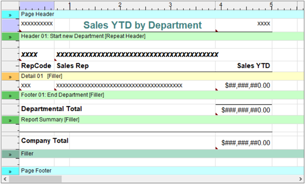 A Filler section will be added to the Report Designer grid immediately before the Page Footer. It will automatically set the Use Filler line to fill gap between last line and page bottom option for all currently defined control breaks and detail lines.