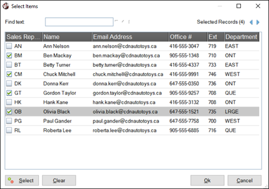 (The Select Items window for selecting records was added in PxPlus 2023.) | |||||||||||||