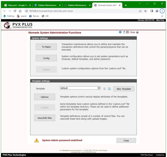 In the Sidebar Link definition below, a new link, "iNomads Admin", was specified that will launch the iNomads transaction, admin. This was done by providing txid=admin in the Associated Name column.