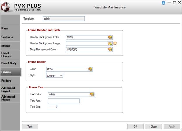 A template directory can also contain a style sheet to be applied after the system default style sheet. This style sheet (style.css) contains information that will be used by the browser to define the presentation of the panels. Generally, this includes font, color and background information. Other information can be included in the style sheet; however, care should be taken when overriding things such as the size and placement of controls, as they can adversely affect the final layout of the panel.