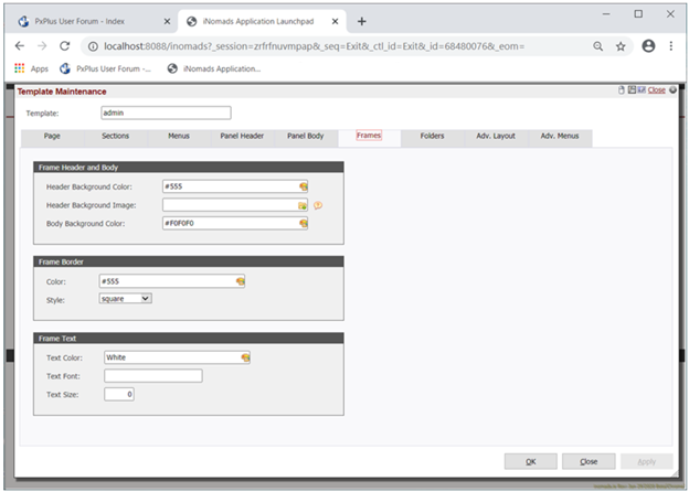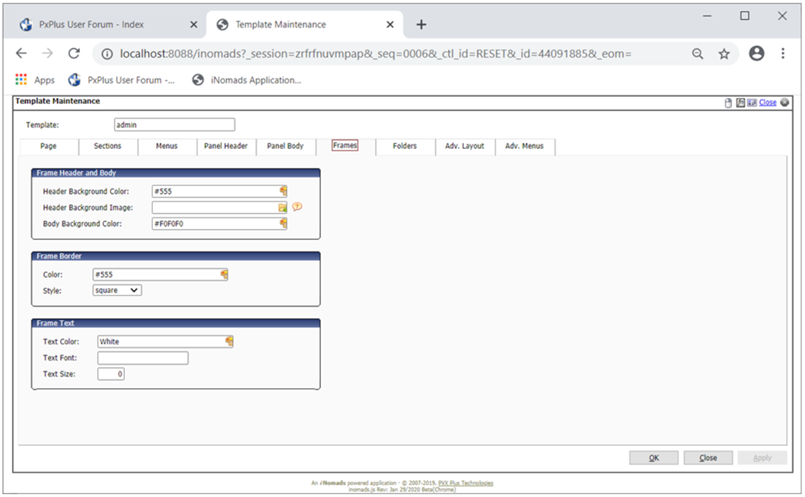 Templates are used to define how your NOMADS panels will be displayed under iNomads. They control the presentation of your application panels within the browser and provide an easy means to externally customize the appearance.