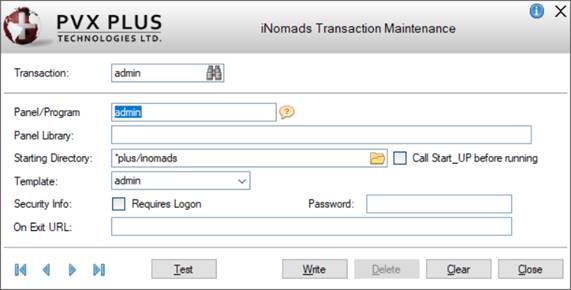 A transaction defines the program or NOMADS panel, starting directory and template to use for an iNomads application. Only those programs/applications defined as transactions can be run on iNomads. These define the entry points to the system by providing the following information: