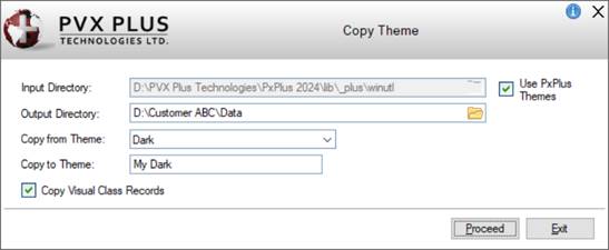 Copy Theme utility for copying existing Themes or predefined PxPlus Themes and related Visual Classes