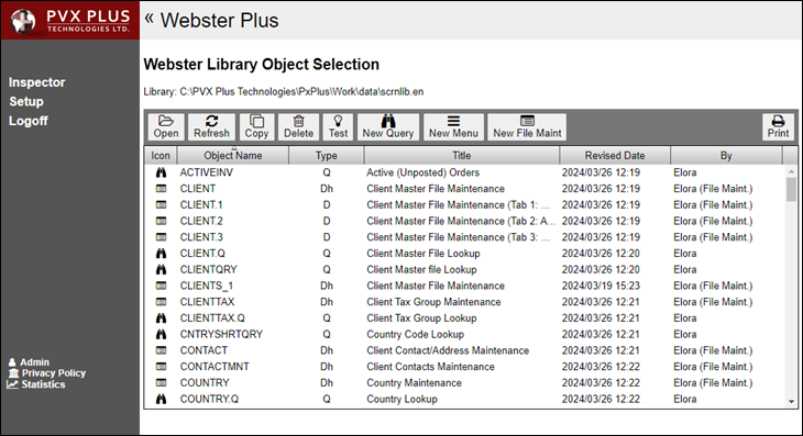 Webster+, launched in 2021, provides developers with the optimal toolset to convert your application to browser based. PxPlus 2024 continues to enhance Webster+ with the ability to create and maintain screen library objects using a Web browser with Webster+ Inspector. |