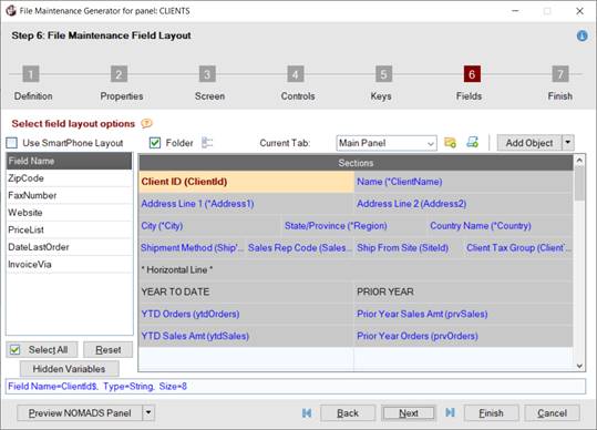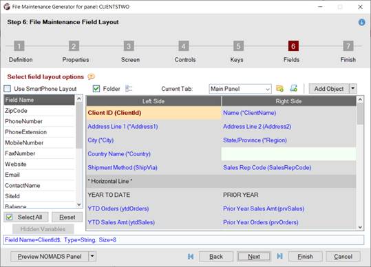 Layout option added for selecting either the Enhanced Layout or Two-Column Layout when defining a new file maintenance panel