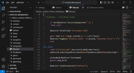 Example: PxPlus Program Opened in Visual Studio Code Editor |