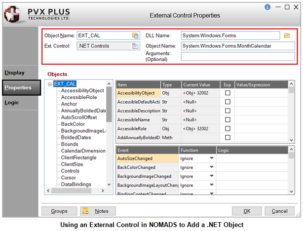 .NET External Controls for embedding .NET objects into NOMADS panels