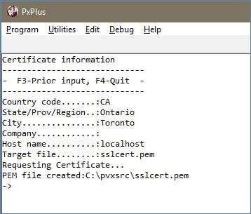 (The SSL Certificate Generator program was added in PxPlus 2017.)